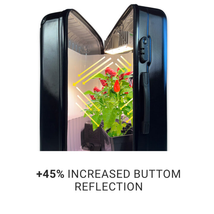 As a result, the available light is directed back into the grow chamber, ensuring uniform illumination and maximum light output.