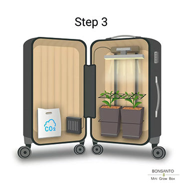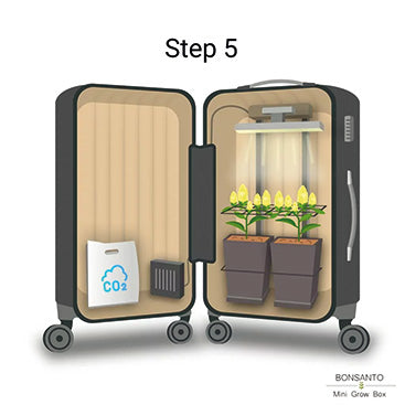Place the Bonsanto CO₂ bags inside the box between week 3 and week 4. The extra CO₂ will accelerate your plants’ growth.