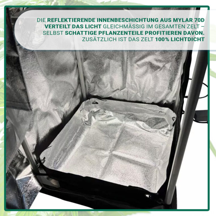 This compact system combines optimal lighting, controlled air circulation, and a completely odor-proof environment– all in a premium grow tent that has been awarded by RTL and PanBu.de as a test winner.