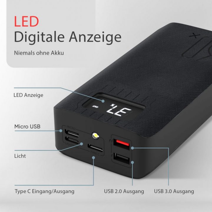 Die integrierte LED-Anzeige zeigt den aktuellen Ladestand präzise an, damit du stets den Überblick behältst.