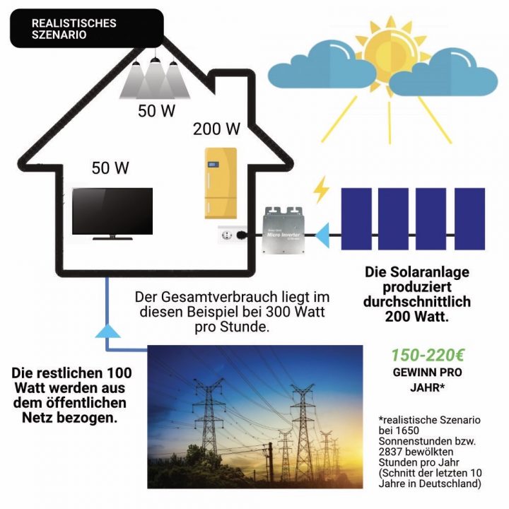 Balkonkraftwerk 440 Watt flexibles Modul + Wechselrichter (700) + Kabel