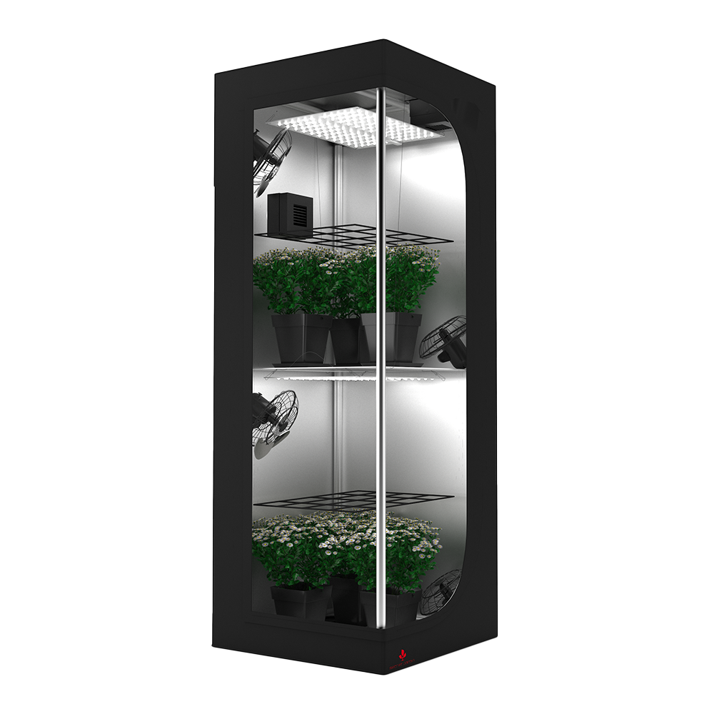 Leiten Sie die Blütephase der Pflanze ab der dritten Woche mit einer Beleuchtungsdauer von 12 Stunden ein. (Hinweis: Autoflowering-Pflanzen können 18 Stunden weiter beleuchtet werden). Lassen Sie den Aktivkohlefilter ab der dritten Woche durchgehend laufen. Der interne Lüfter sollte ab dem 28. Tag nach der Keimung im Zyklus (1 Stunde an, 1 Stunde aus) laufen. Ab der 10. Woche können Sie den internen Lüfter durchgehend laufen lassen.