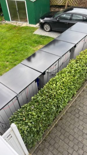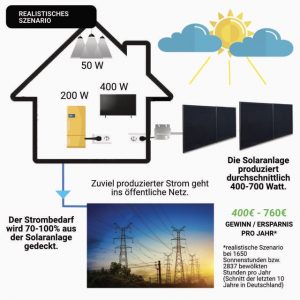 Die Solaranlage produziert Strom, sobald die Sonne scheint und speist den Strom direkt in die Steckdose ein.