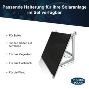 Ohne Halterung, Balkonbefestigungssatz, Wandbefestigungssatz, Flachdachbefestigungssatz, Ziegeldachbefestigungssatz, Wiesenbefestigungssatz |