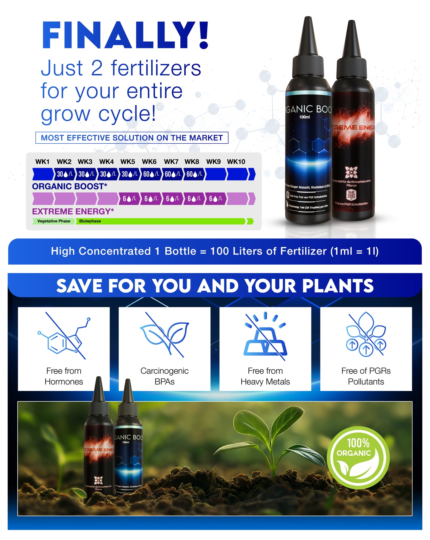 b) 1 × Extreme Energy Concentrate (100 ml) → makes 100 L of fertilizer