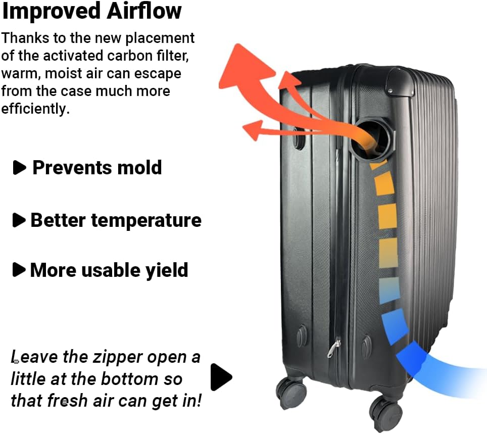 Thanks to the integrated ventilation system, a constant negative pressure is created inside the case, effectively containing all odors.