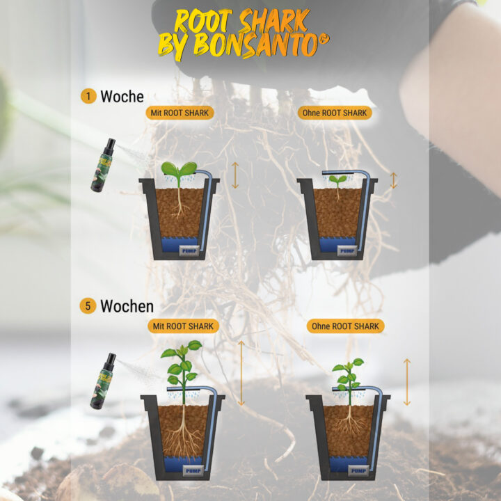 Whether in a hydro system or in Bonsanto® Premium Soil, Root Shark is the ideal growth booster for any cultivation method.